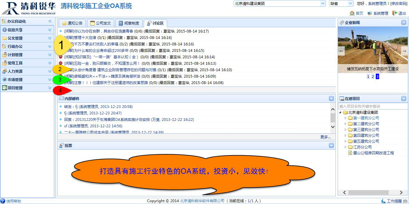 4.2 辦公、人力、市場、項目,系統(tǒng)提供全方位管理。