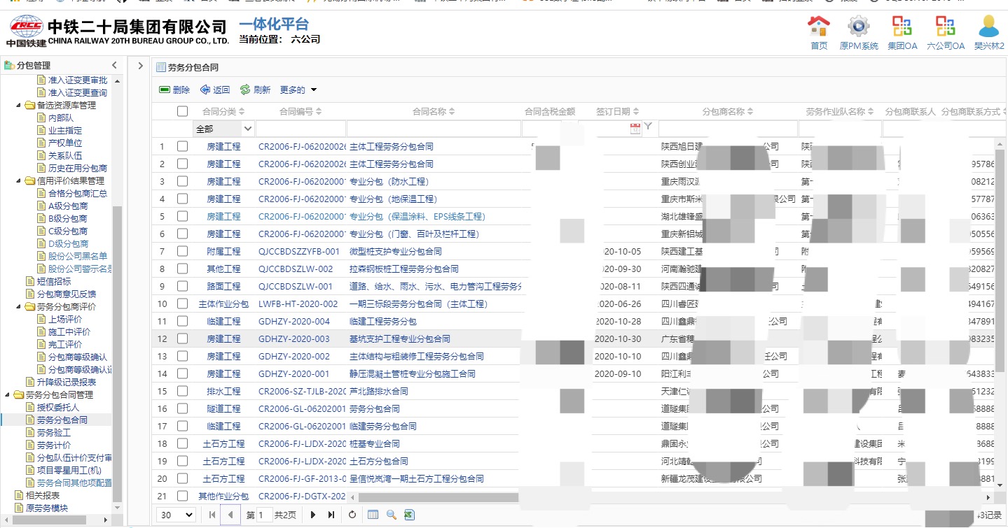 物資、分包、勞務(wù)、設(shè)備等項目合同必須在PM系統(tǒng)中審批后才能簽訂,簽訂供應(yīng)商和分包商等必須在公司合供商庫中,所簽合同必須在系統(tǒng)中結(jié)算和支付。