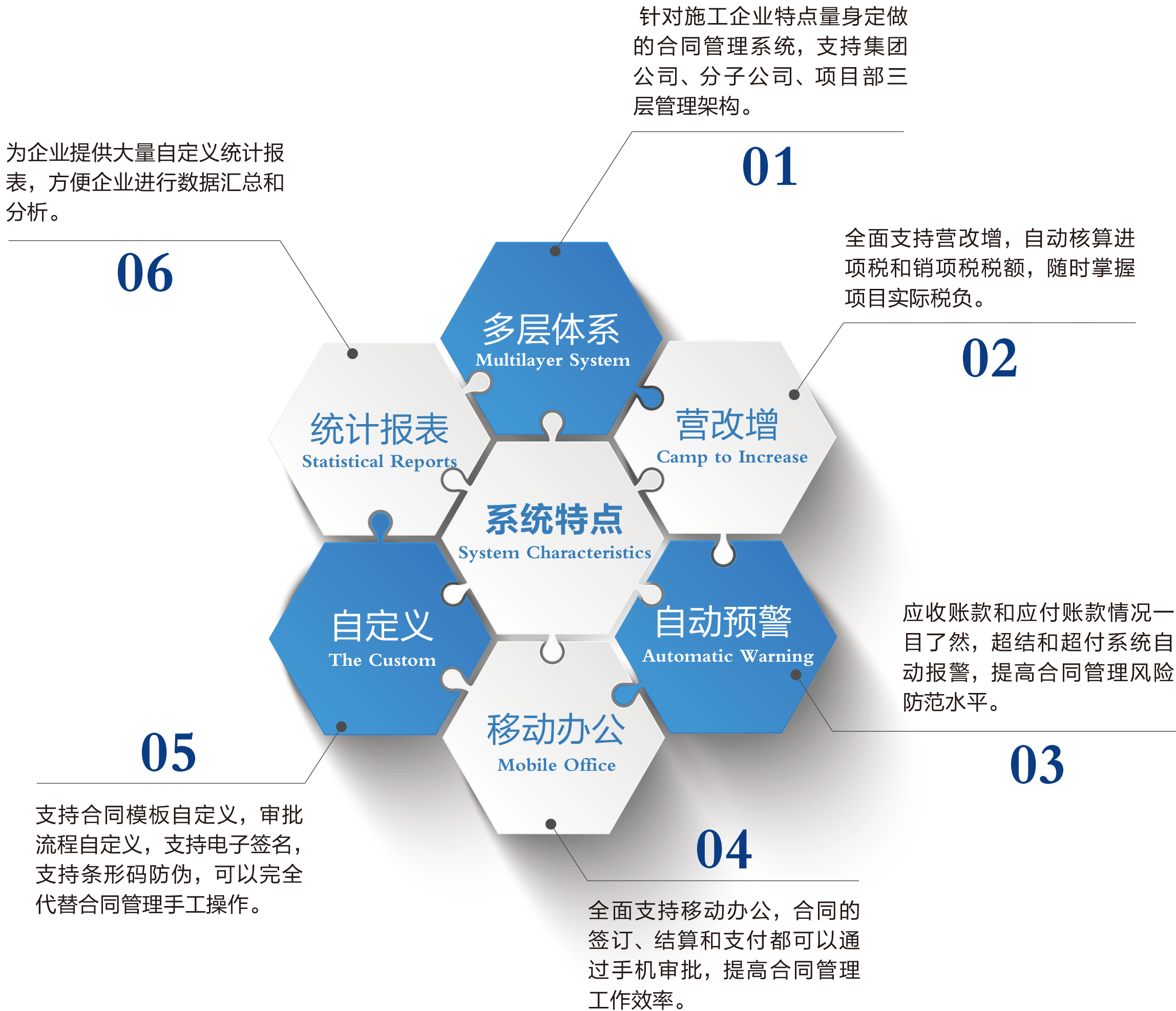 4.1 針對施工企業(yè)特點量身定做的合同管理系統(tǒng),支持集團公司、分子公司、項目部三層管理架構(gòu)