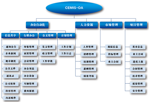 CEMIS-OA涵蓋了施工企業(yè)主要業(yè)務(wù)部門的核心業(yè)務(wù)流程,既包括總部機(jī)關(guān)的各種通知、公告、公文、資料和業(yè)務(wù)單據(jù)審批,也包括了市場部項目跟蹤、投標(biāo)、中標(biāo)、簽訂合同整個業(yè)務(wù)流程,同時項目主要信息也一目了然,包括項目回款、進(jìn)度、合同、質(zhì)量、 安全、技術(shù)等。